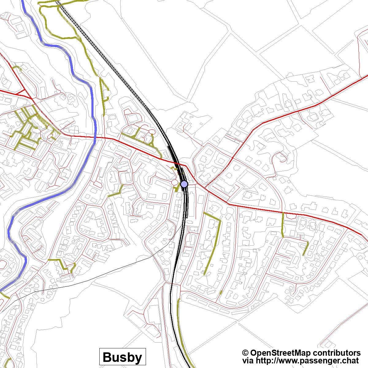 | Grand total - journeys to and from Busby | 100.0% | 100.0% | 100.0% | 100.0% | 100.0% | 100.0% | |
